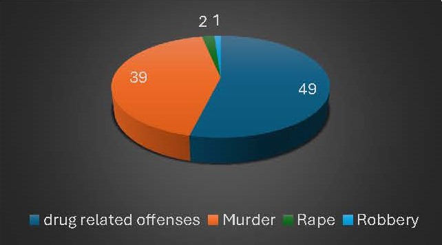 The data shows that executions during December 21, 2024 – January 19, 2025, were carried out for four different reasons: drug-related offenses, murder, rape, and robbery.