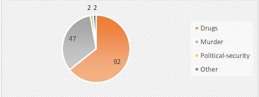 The data indicate that the executions were carried out for various reasons, including drug-related offenses, murder, political and security crimes, and other crimes such as rape. The breakdown of these reasons highlights the diverse nature of the crimes leading to the death penalty in the first quarter of 1403.